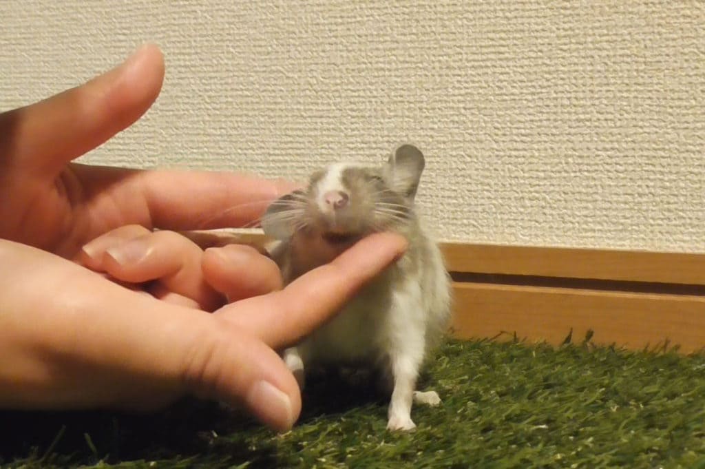 先ほど紹介した我が家の1代目デグー、ドンちゃんは人間慣れしてるので、抱っこしたり撫でたりするとクゥ〜と鳴き始めます。